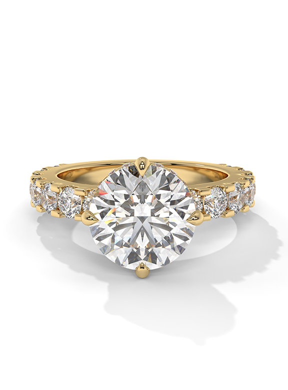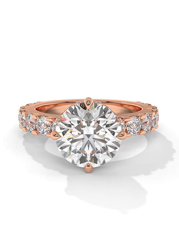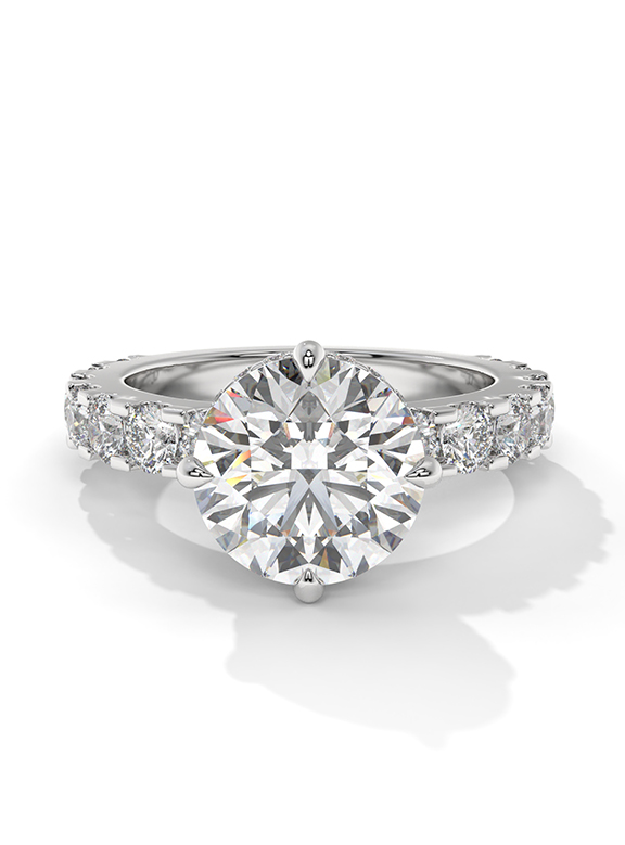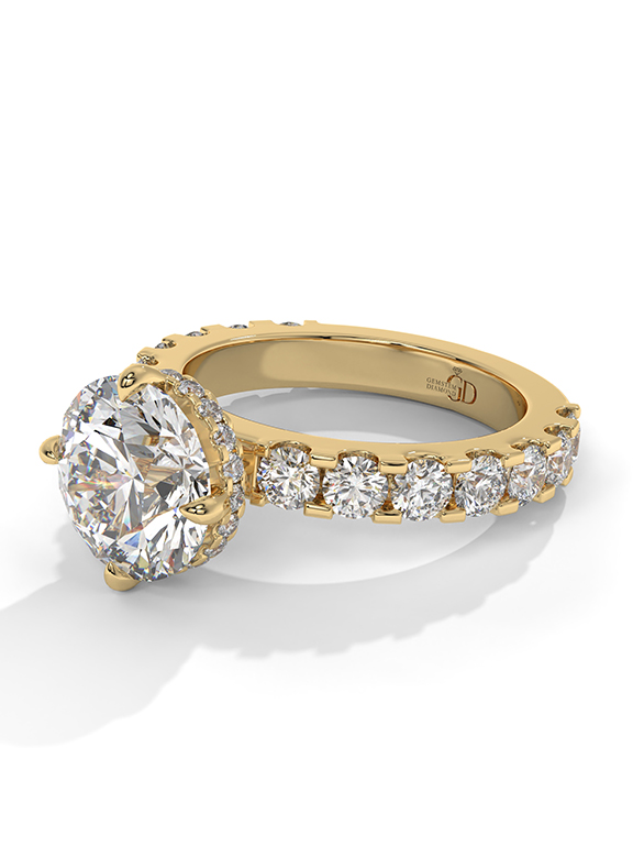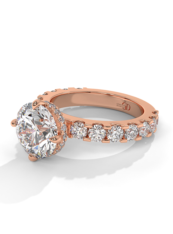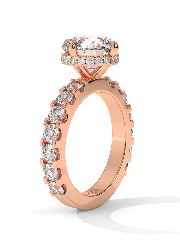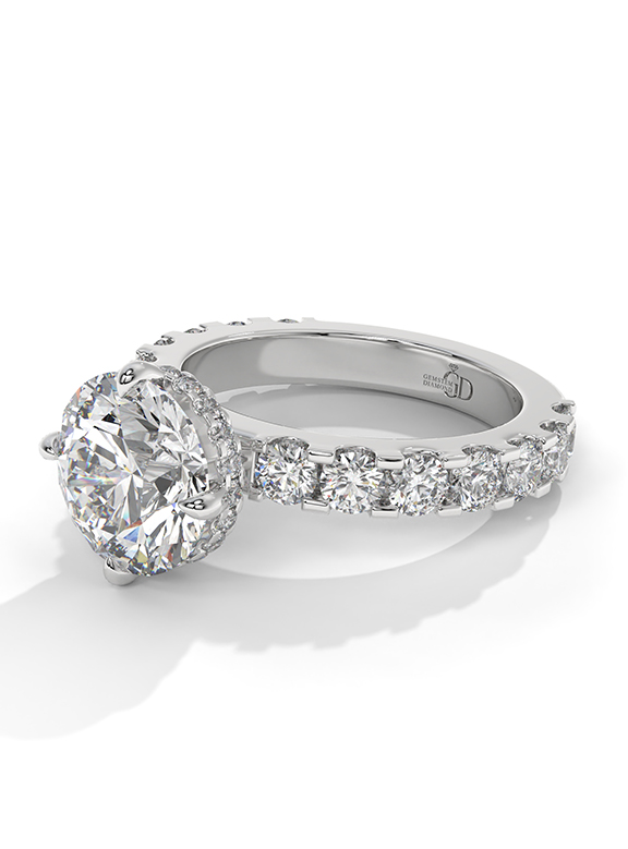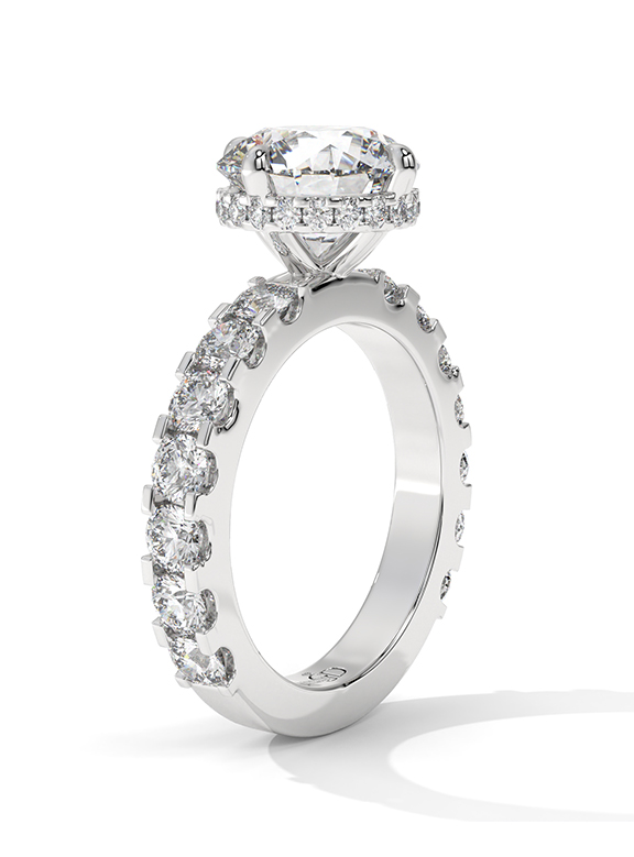 - Setting: Elevated Six-Prong with Hidden Halo and Graduated Pave Shank