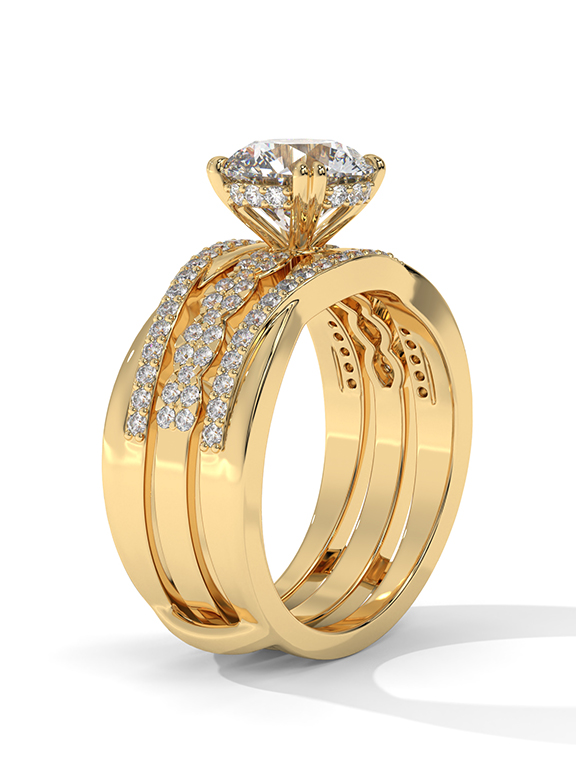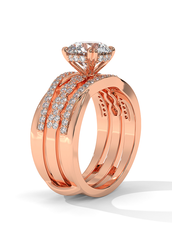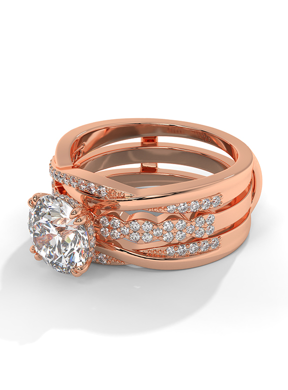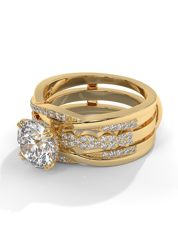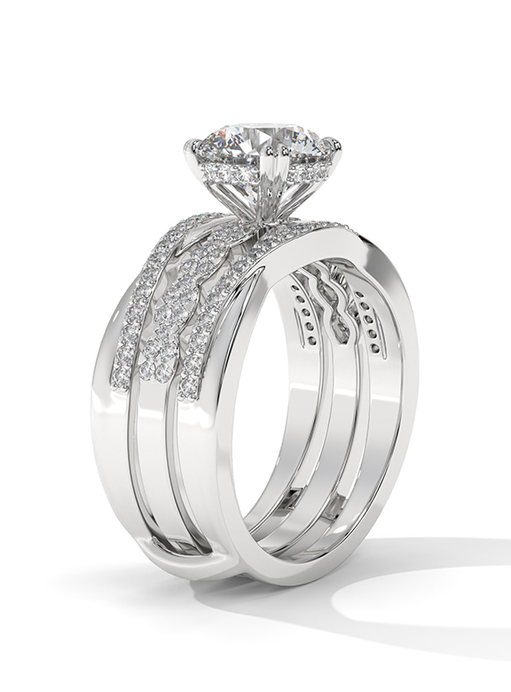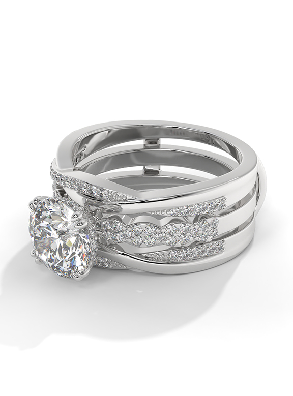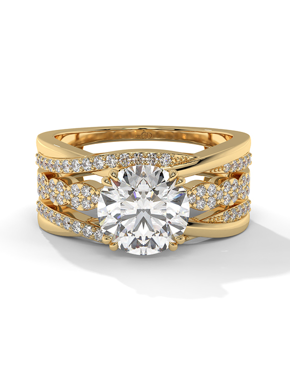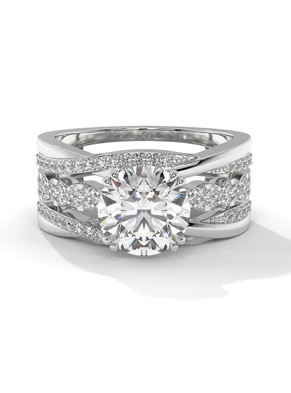 - Setting: Elevated Four-Prong with Triple-Row Architectural Shank