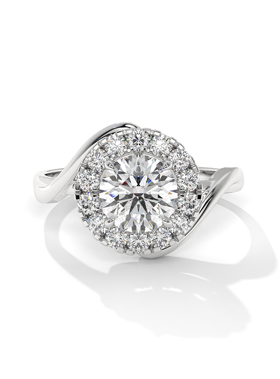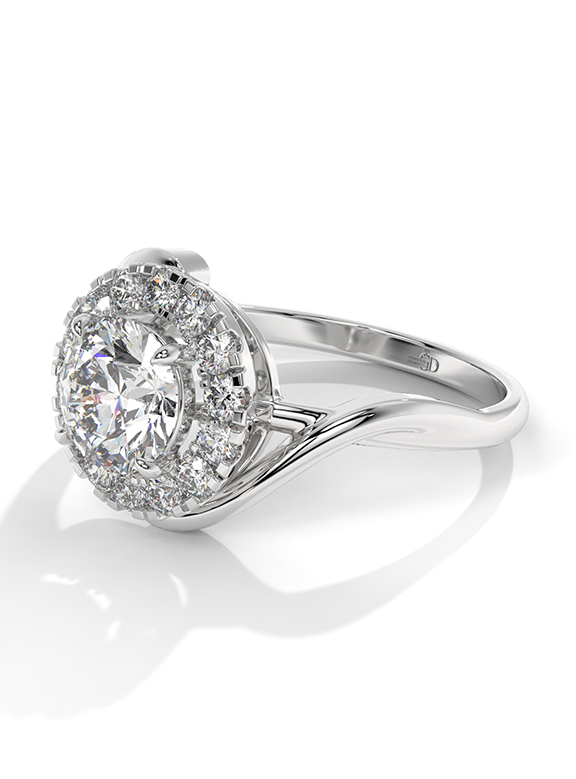 - Setting: Round Halo with Bypass-Style Shank