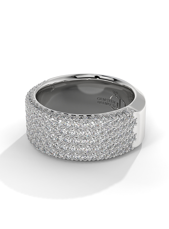 Wide Multi-Row Pave Diamond Statement Band