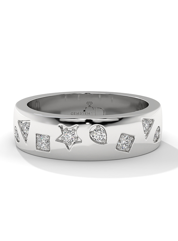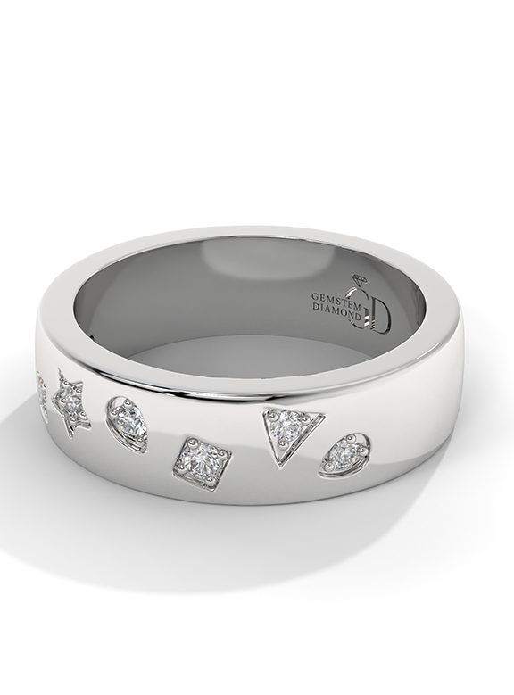 Flush-Set Diamond Motif Wide Band