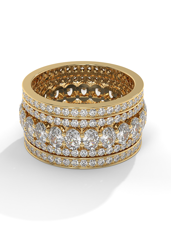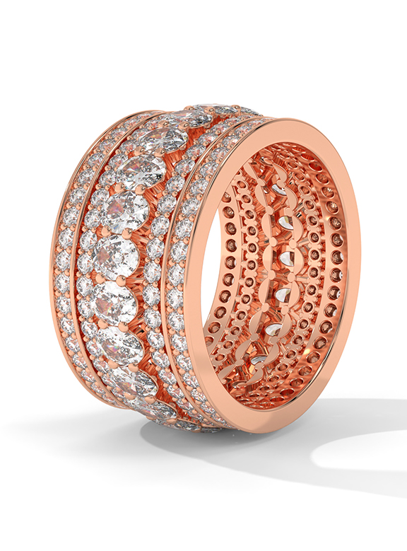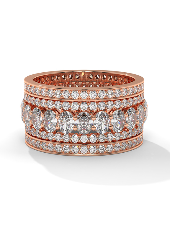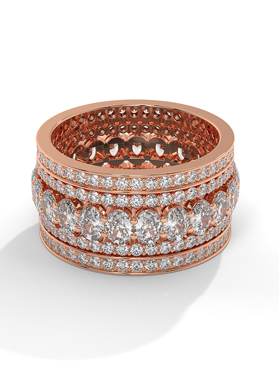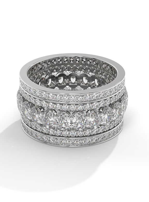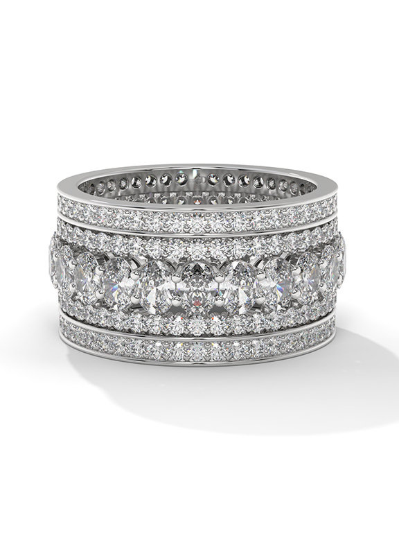 Wide Oval and Round Diamond Pave Eternity Band