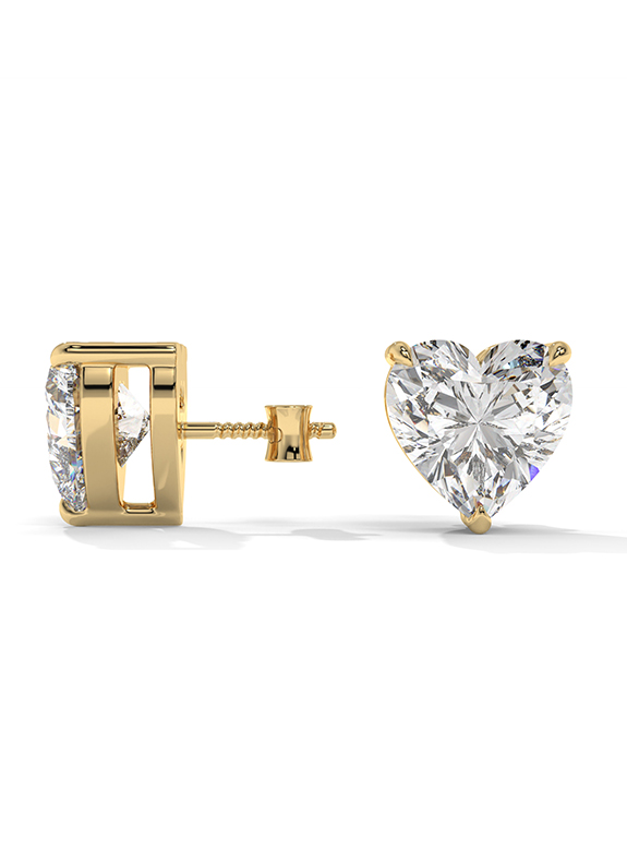 These enchanting heart-cut solitaire stud earrings are a masterclass in light and luxury, featuring two brilliantly faceted heart-shaped center stones designed for radiance from every angle. The architectural head is supported by a classic three-prong setting that elegantly cradles the stones while allowing for maximum light exposure. This exquisite design is finished with secure threaded posts and butterfly backings, offering a perfect blend of romantic opulence and daily comfort.