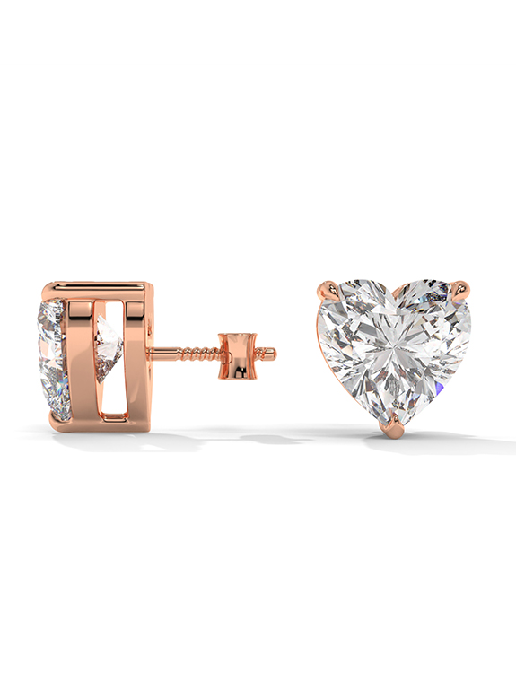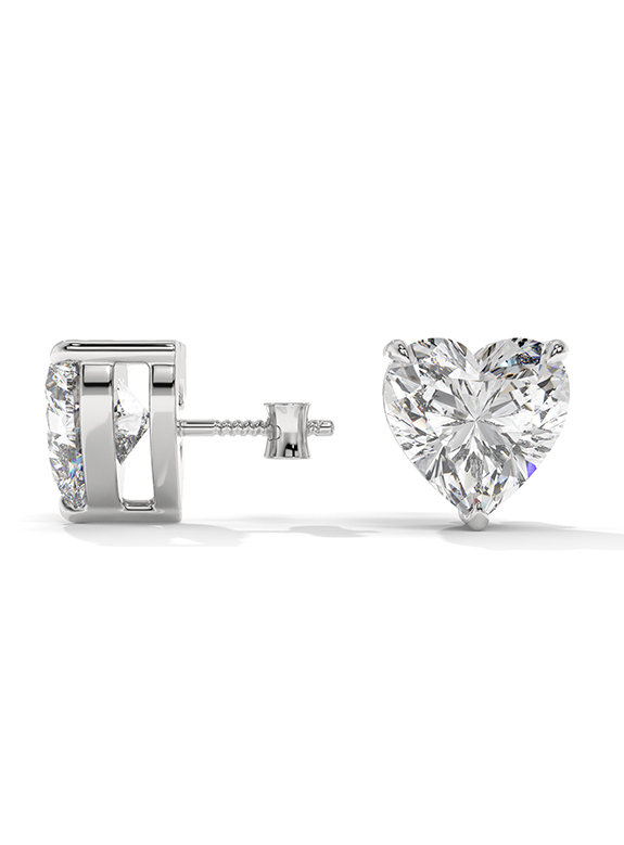 Heart-Cut Solitaire Stud Earrings with Three-Prong Setting